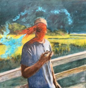From her studio at Public Works Art Center in Summerville, SC, Stephanie Drawdy creates representational and abstract paintings with a lyrical tone. Her paintings feature urban, seascape, still life, and figurative images in oil, watercolor, and mixed media. The range of marks and textures in her work are achieved with an application technique that includes palette knives, brushes, aerosols, and markers. In her Park Circle Gallery exhibition, Beyond the Horizon, Drawdy will present a series of paintings that celebrate the Lowcountry fisherman and marshscape. “These works portray not just landscapes and figures, but also a mood—the slow, steady life lived on the water,” she explains. Non-traditional colors and images are sometimes incorporated into a seemingly traditional scene, challenging the observer to merge dreams with reality.