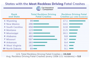 - The state sees 12.78 reckless driving fatal crashes per 100,000 residents