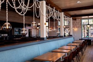 The Kingstide is a two-story space featuring a combination of 76 indoor seats and 52 outdoor seats, as well as additional al fresco lounge and dining options. The interior has an open kitchen (complete with a wood-fired hearth), a chef’s counter, and raw bar.