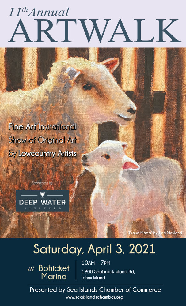 The 11th Annual Art Walk at Bohicket will be held on Saturday, April 3rd from 10 am to 7 pm at the entrance to Bohicket Marina. The event is brought to you by the Sea Islands Chamber of Commerce and sponsored by Deep Water Vineyard. –