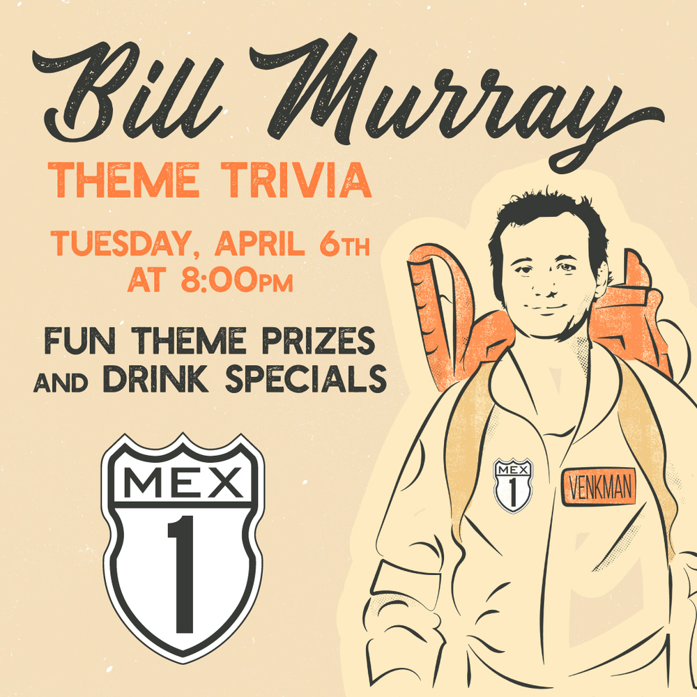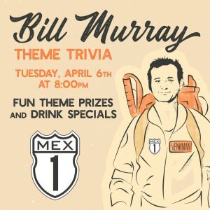 On Tuesday, April 6th, Mex 1 Coastal Cantina in West Ashley will host Bill Murray Theme Trivia starting at 8 pm.