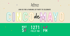 Join Jalisco for a pet-friendly Cinco de Mayo celebration on May 5th, in their spacious parking lot from 4 pm to 9 pm.