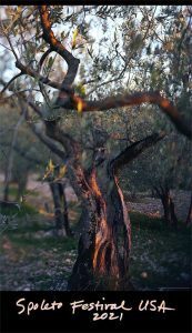 Says Redden: “I was thrilled when JoAnn selected one of her olive tree images for the poster. The olive tree is a wonderful representation of life, growth and constant care—an especially meaningful symbol after the difficulty of last year.” That the image was taken just outside of Spoleto, Italy, the site of the American festival’s origins, is another parallel. Redden, whose association with Spoleto first began 52 years ago as an apprentice with the Festival Due Dei Mondi, is retiring in October. “Olive trees require a great investment in time and cultivation; it takes a long time for a tree to grow to a point where it will produce fruit,” he says. “Yet the beauty is in that longevity. The trees continue through generations of dedicated families tending their branches.”