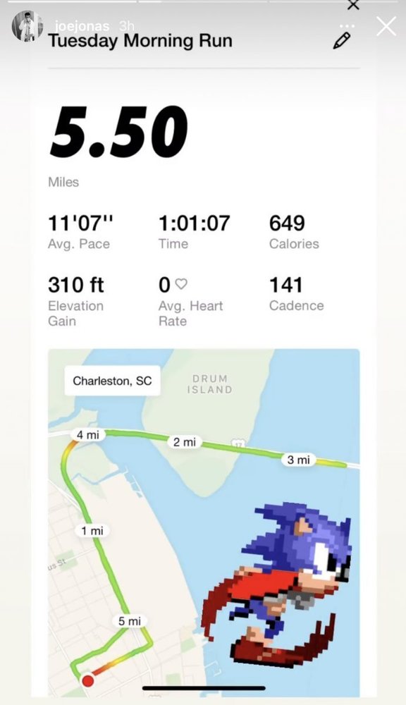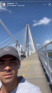 Singer, songwriter, and actor Joe Jonas on Tuesday posted on his Instagram stories that he ran the Ravenel Bridge today. Jonas, who is part of the popular pop group the Jonas Brothers, also shared the route he ran around the bridge.