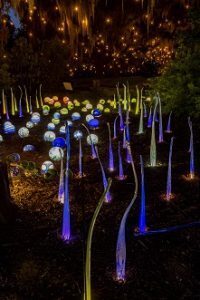 - The Nocturnal Garden – a display of colorful globes, reeds, and blooms created by Conway Glass in the Hancock Oval at the end of Oak Allée.