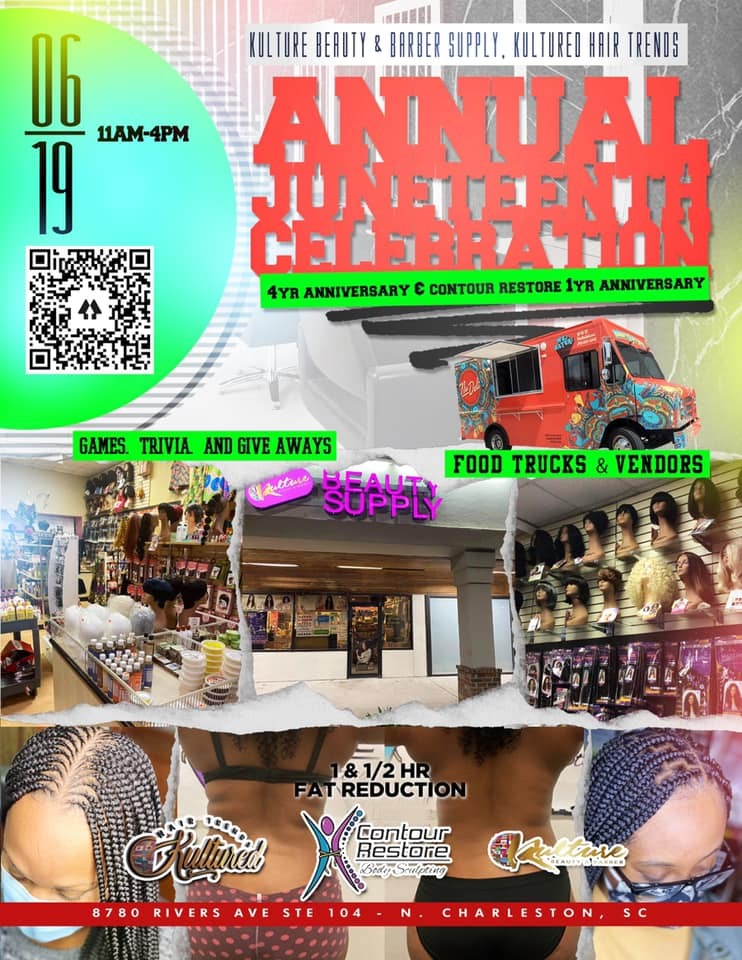 Kulture Beauty & Barber Supply is celebrating its four-year anniversary of opening its doors in North Charleston with a celebration in honor of the occasion, and Juneteenth on Saturday, June 19th, 2021. The festivities will be taking place at their store at 8780 Rivers Avenue, Suite 104, North Charleston, in the same shopping center as the Piggly Wiggly Grocery Store, from 11 am to 4 pm.