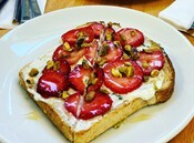 By far the toast that has become all the rage at Owlbear, is their Strawberry Pistachio. Imagine thin sliced strawberries and chopped pistachios, nicely arranged on top a whipped ricotta spread with a hint of mint, and a splash of honey. More sweet than salty, but overall a toasted indulgence pleasing three of five the senses. A yummy five star treat any time of day.