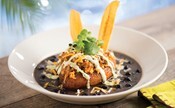 Perhaps you came in Bahama Breeze in full island mode. I suggest the Jamaican Stuffed Plantain Bowl, a whole sweet plantain caramelized to perfection, stuffed with yellow rice, spicy ground beef, and surrounded by a hearty black bean sauce and shredded cheese. Simply a taste of the tropics, and a diversion from the norm!