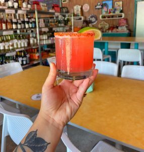 - Watermelon Margarita – Lunazul Blanco, Fresh Watermelon, Fresh Lime Mix, Tajin Rim