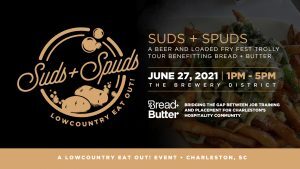 Brewery District will partner up for Suds + Spuds, a fundraising event benefiting Bread + Butter. Each ticket holder will have exclusive use of the brewery district trolley which will make seven stops. Each participating brewery will give attendees a 1/2 pint of beer and the partnered restaurants will be giving guests a 1/2-lb. boat of loaded fries.Bread + Butter is a 501(c)3 nonprofit that attempts to bridge the gap for the local hospitality community by training and placement for culinary positions in the Lowcountry.