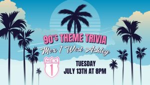 - How much do you remember about the 90’s? Join Mex 1 West Ashley on Tuesday, July 13th at 8 pm for their next Theme Trivia and test your knowledge on music, movies, TV shows, and pop culture from one of the best decades