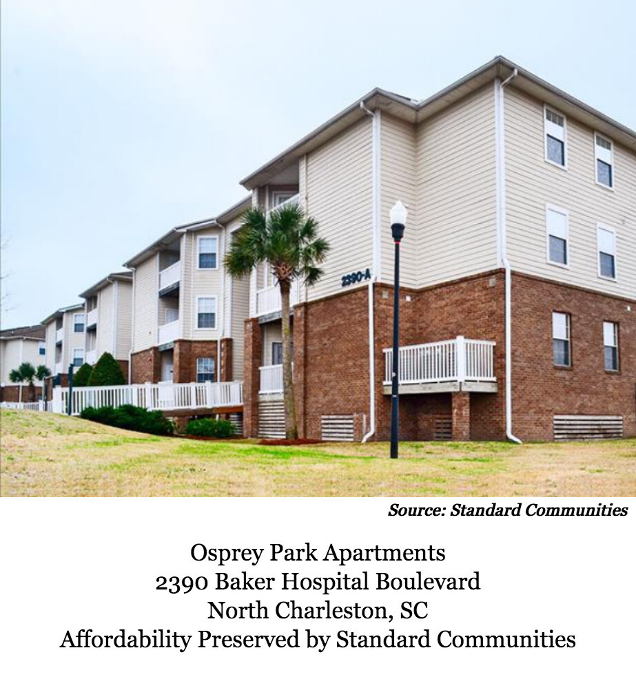 Standard Communities, has led a public-private partnership to acquire Osprey Place Apartments in North Charleston, SC. This deal brings Standard’s affordable portfolio in the Charleston area to over 500 units.