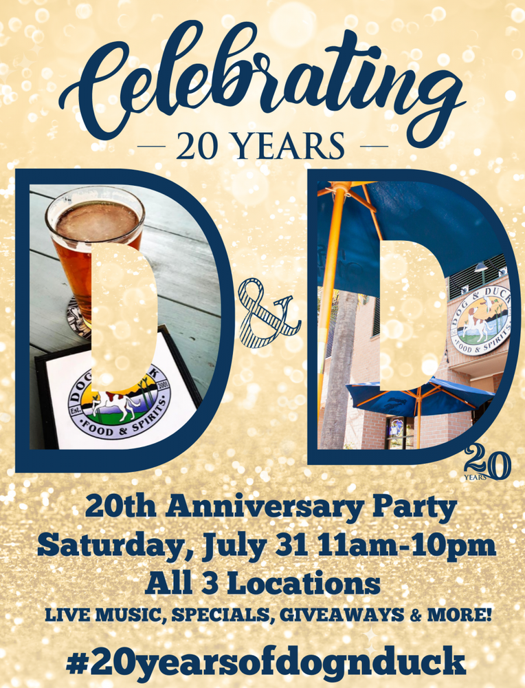 “This anniversary party is different,” said Alli Bradley, co-owner of Dog and Duck. “Being here for 20 years is important to us. We want everyone that has ever worked here or has spent time here as a customer to come in and celebrate with us! We consider this to be a big family reunion of sorts-and we want to say thanks for being a part of our success.”