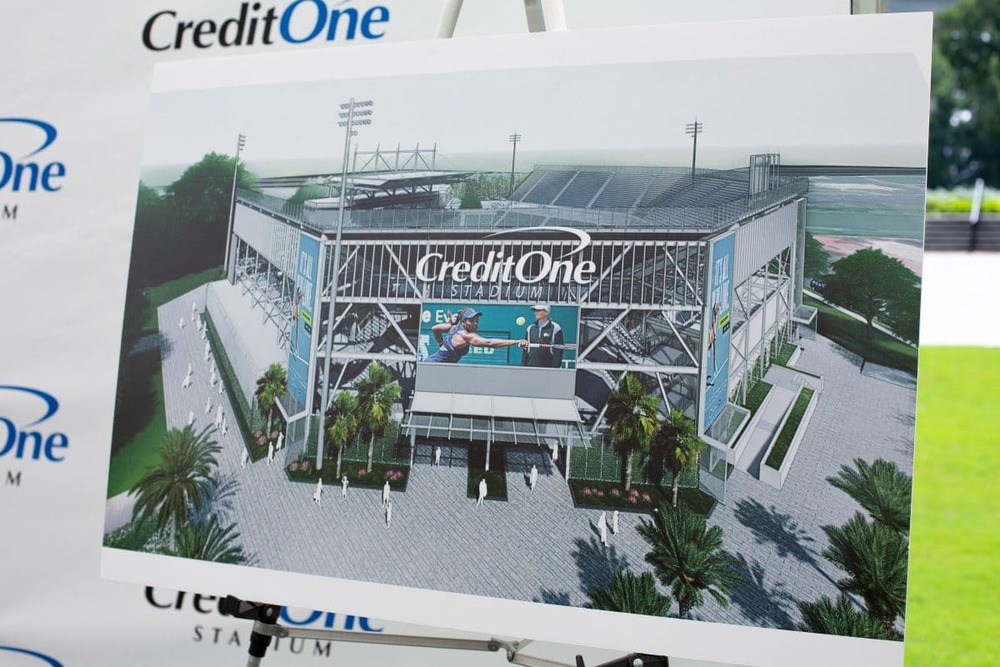 Credit One Stadium will expand from 7,500 seats to 11,000 seats and feature 16 fully conditioned permanent suites, all-new concessions, more bathrooms, and a 75,000-square-foot Stage House with a partial roof. The Stage House will transform the stadium experience for tennis players, entertainers, media, and special guests, offering locker rooms, a gym, training facilities, production and media space, catering amenities, and a VIP rooftop restaurant and outdoor bar. The roof of the Stage House will also provide partial shade for attendees at the tennis tournament and act as a support structure for concerts and special events.