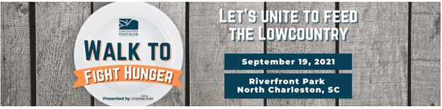 The Lowcountry Food Bank Walk to Fight Hunger will take place on Sunday, September 19th at Riverfront Park in North Charleston. Individuals, companies, civic groups, schools, and churches are encouraged to put together fundraising walk teams and celebrate with the community at the event.