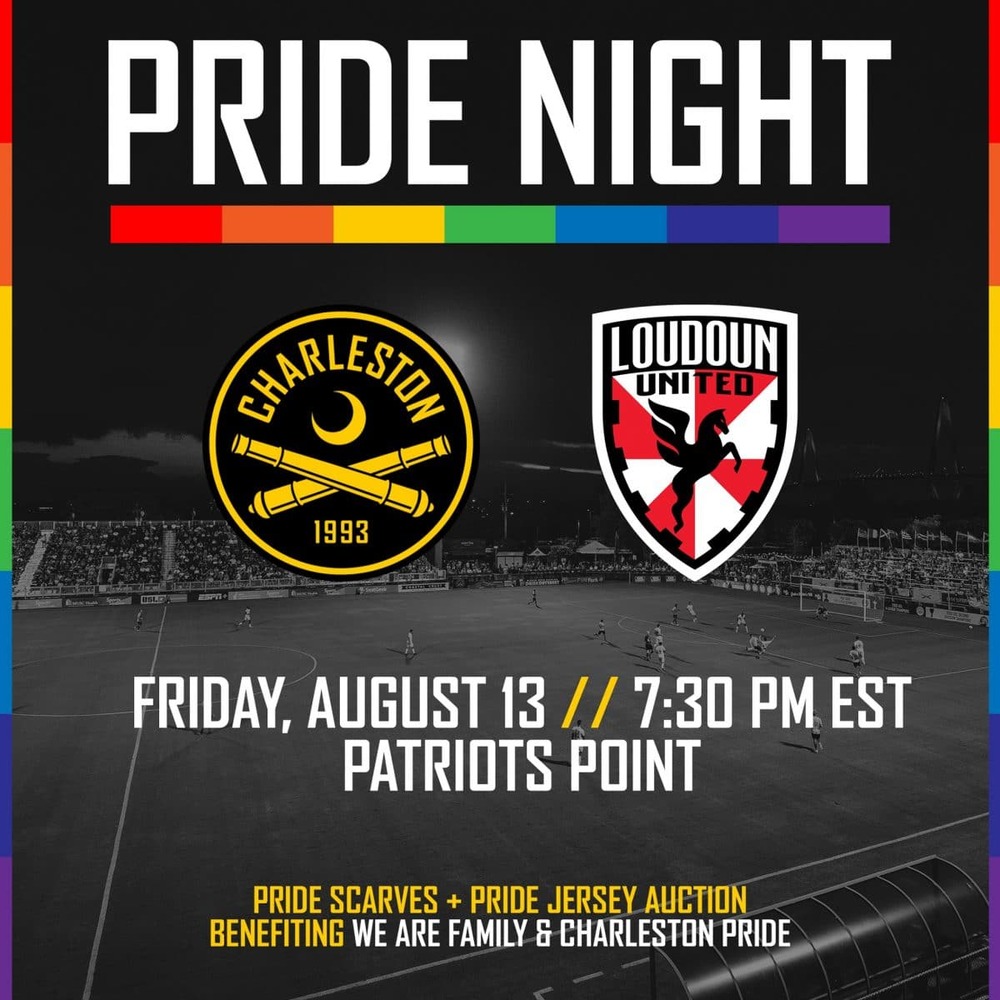 Leading up to the Pride Night celebration, the club will unveil special edition Pride supporters scarves with proceeds from each scarf benefiting both We Are Family, a youth advocacy organization that provides affirming spaces for LGBTQI+ and ally youth through direct support, leadership development and community engagement, and Charleston Pride, whose mission is to promote the visibility of the LGBTQI+ community in Charleston and the greater Southeast region through programming and events that educate society on, honor the heritage of, and celebrate the culture of the LGBTQI+ community.