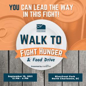 The Lowcountry Food Bank Walk to Fight Hunger will take place on Sunday, September 19th from noon to 4 pm at Riverfront Park in North Charleston.
