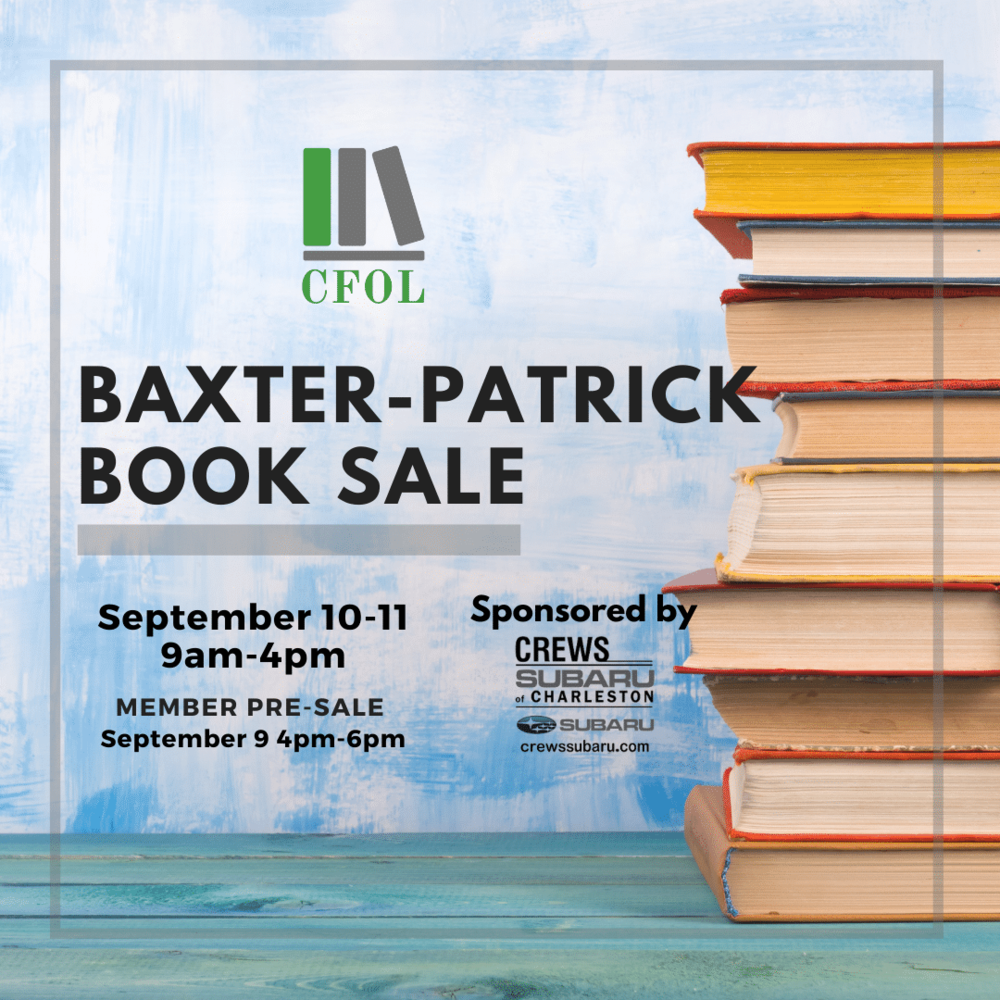 Looking for your next read and a way to support your local library? Load up on great books by shopping and supporting your library at the Charleston Friends of the Library’s (CFOL) next Branch Book Sale on James Island.