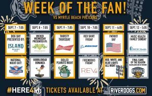 The 2021 season brought back many things to Joseph P. Riley, Jr. Park that hadn’t been around since the end of the 2019 campaign. However, there was one key ingredient at the ballpark that was missed more than anything else…the fans. During the final regular season homestand of the season, the Charleston RiverDogs will tip their cap to the people who make each season so special by hosting the “Week of the Fan.”