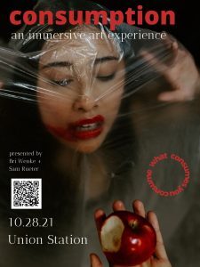 CONSUMPTION will encapsulate the 2,000-square foot space of Union Station and create an immersive experience exploring the overindulgence and addictive culture of humans and how it affects the natural earth. Rueter and Wenke, along with Lori Denicola of Petaloso, will transform the space into an incredible interactive experience featuring original art, surround sound, and live installation experiences for all guests to explore their message of consumable consciousness. The exhibition will feature never-before-seen work from Rueter and Wenke that will only be on display for one day only.