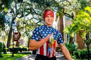 “I was a pretty competitive runner and an OK swimmer,” he says, “and had some experience cycling, so they added me to the team. I got to compete in a lot of places, including a triathalon in Spain. But once my military service was over, I finally had the chance to become certified to compete in velodrome races – so I jumped fully into it. I got certified to ride at the velodrome in Rock Hill, in the Upstate.”