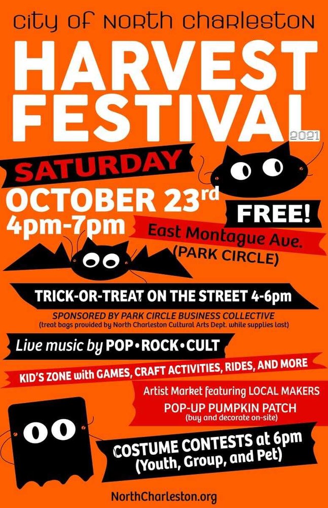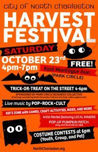 The annual Harvest Festival is a rain or shine event produced by the City of North Charleston in collaboration with the Park Circle Business Collective. For information on additional programs and events, visit the Arts & Culture section of the City’s website at www.northcharleston.org.