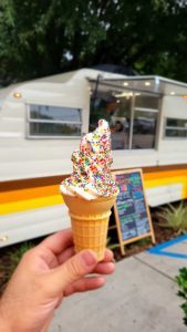 Dashi’s Dessert Camper features ice cream from Cirsea with fun flavors like Vanilla Black Pepper, Latte, Green Tea, Cinnamon, Strawberry Goat Cheese, Strawberry Cheesecake, Bourbon Caramel, and more. Toppings include everything from the traditional chocolate and sprinkles to the more unique Thai tea pecans and peach compote.