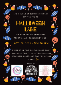 In the year since then, they’ve hosted several soap making classes, Saturday shopping days, and offered local picks, and now for the Halloween season they’ve teamed up with other businesses in their complex to host the inaugural Halloween Lane. Shoppers will be able to get their hands on limited edition items, enjoy light snacks and refreshments, and leave with treats for themselves or their little ones. Businesses include Sassy Shortcake Boutique and Recharge Nutrition.