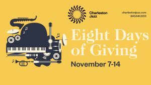 Dine for Jazz is part of Charleston Jazz’s “Eight Days of Giving” campaign being held from November 7th to 14th. Contributions directly support the mission of Charleston Jazz. For more details on the entire campaign, click here.