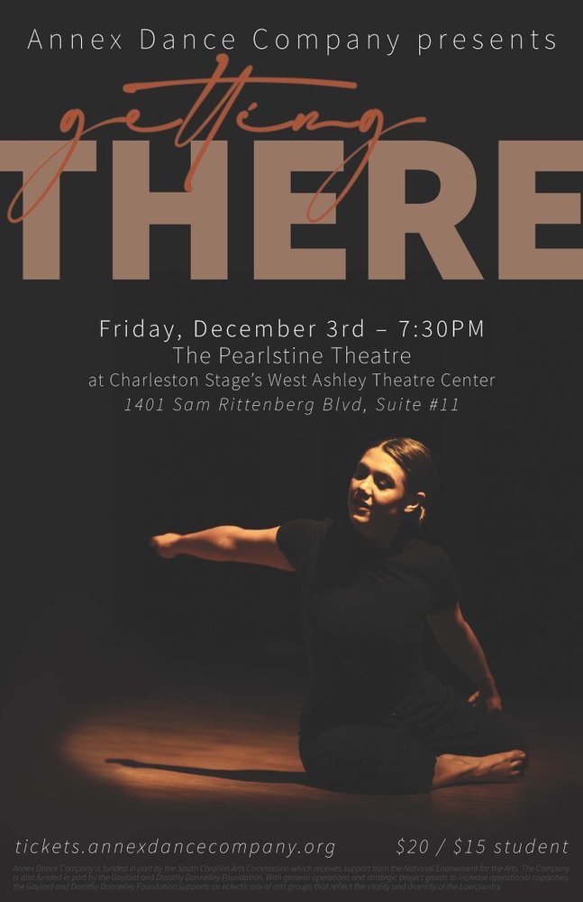 Annex Dance Company will present Getting There at the Pearlstine Theatre at Charleston Stage’s West Ashley Theatre Center located at 1401 Sam Rittenberg Blvd #11, Charleston, SC 29407. Conveniently located only 14 minutes from Downtown, 10 minutes from Park Circle, and 15 minutes from Mount Pleasant, there is plenty of free parking and great restaurants nearby.