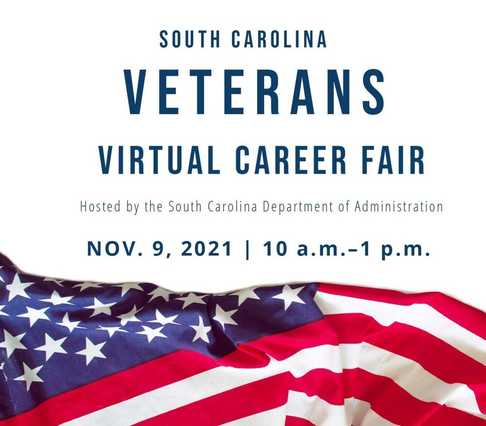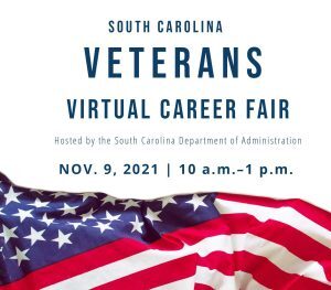 Governor Henry McMaster, the South Carolina Department of Administration (Admin) and the South Carolina Department of Veterans’ Affairs (SCDVA) encourage all South Carolina veterans looking to continue a career of service to take part in the Veterans Virtual Career Fair happening November 9, 2021.