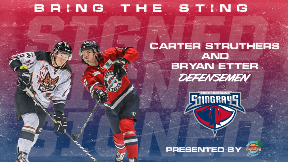The South Carolina Stingrays have agreed to terms with defensemen Bryan Etter and Carter Struthers ahead of Wednesday’s matchup with the Greenville Swamp Rabbits.