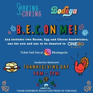 Tickets can be purchase through this LINK and sandwiches are available to redeem at Uptown Social on Thanksgiving Day from 9 am to 2 pm. All donated sandwiches will be delivered to One80 Place that afternoon.