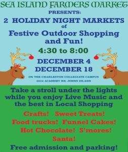 Admission and parking are free, but carpooling is encouraged. For more information, visit Seaislandfarmersmarket.com.