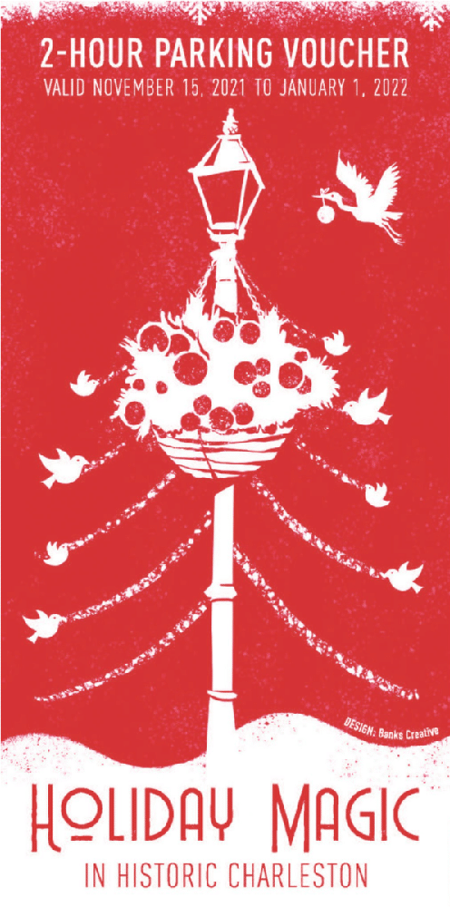 The voucher is good for two hours of free parking at participating garages. It is valid now through Friday, January 1, 2022.