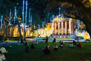 Rows of glittering lights adorn the columns of CofC’s most iconic building to put on a show for students and passersby, complete with holiday tunes. And the fifth annual Cougar Night Lights holiday light show will kick off at 5 pm on December 1st, 2021, with a special showing for College of Charleston students.