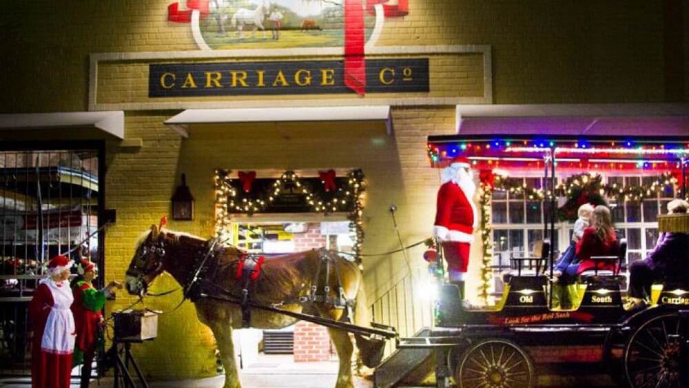 The 20-minute ride includes a Christmas carol sing-along as the horse-drawn carriage travels through downtown. The tour’s last stop is Santa’s Stable (located behind the Old South Carriage Stable Barn). Guests will be joined by Old St. Nick, Mrs. Claus, and Rudolph for hot cocoa and cookies.