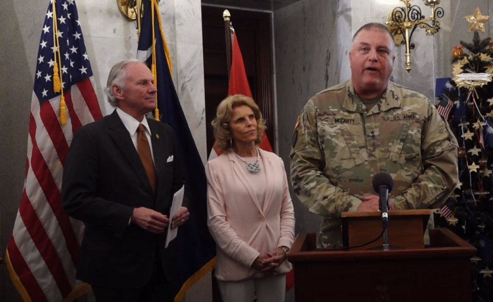 Governor Henry McMaster and First Lady Peggy McMaster were joined Tuesday by Gold Star families, S.C. Adjutant General Van McCarty, and representatives from the S.C. National Guard’s Survivor Outreach Services (SOS) to install a Tree for the Fallen, a Christmas tree commemorating the sacrifices made by South Carolina’s Gold Star families and their loved ones. You can see a video of the press conference below.