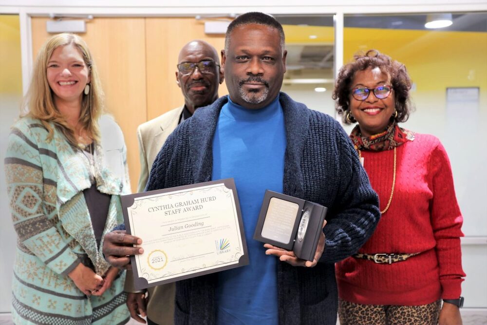 Charleston County Public Library’s (CCPL) Cynthia Graham Hurd Staff Award for 2021 has been awarded to Julian Gooding, Digital Creation Technician at the Wando Mount Pleasant Library. This award honors the memory of Hurd, a 31-year veteran of CCPL, who was killed in the Mother Emanuel AME Church shooting in 2015.