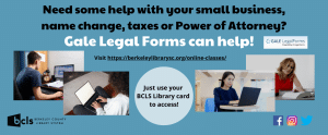 Berkeley County Library System announces resources for small business entrepreneurs such as Power of Attorney, Rental Agreements and more with Gale Legal Forms. Customers can visit Online Databases, and scroll to Gale Legal Forms for assistance with a variety of forms and information. Tax forms, information for individuals, small businesses, Human Resources, and real estate are available in time for tax season with this free service. Visit BCLS Library Card to become a member and get a free library card.