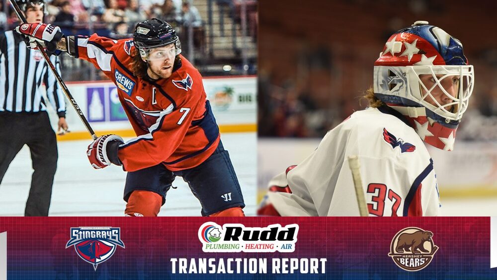 The South Carolina Stingrays, proud ECHL affiliate of the NHL’s Washington Capitals and AHL’s Hershey Bears, announced on Monday that goaltender Ryan Bednard and defenseman Macoy Erkamps have been recalled to the Hershey Bears. Both players signed AHL deals with Hershey this past offseason.