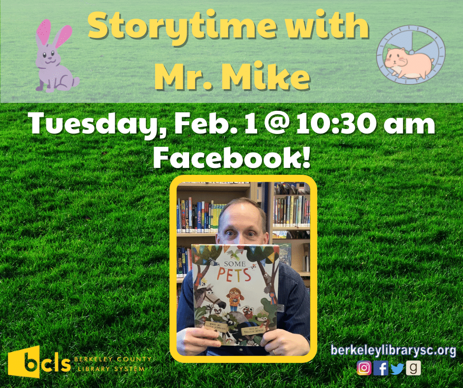 Berkeley County Library System (BCLS) invites customers to return to our Facebook page Tuesday, February 1st, at 10:30 am, and continuing Tuesday mornings, for Virtual Storytime. Customers will enjoy seeing and hearing library staff read stories of colorful characters while increasing children’s early literacy skills.