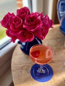 - “True Romance “ cocktail : Bombay Sapphire, strawberry Moscato syrup, Giffard pamplemousse, lemon juice