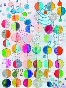 Memories 222 was one of 80 entries by artists from 17 cities across South Carolina that were submitted for consideration for the 2022 North Charleston Arts Fest Poster Design Competition. The mixed media piece was created using paint and pen and incorporates collage, stenciling, and stamping techniques. “As a long-time supporter of the North Charleston Arts Fest, both as a former educator that brought my students to experience the event and as a practicing artist that has entered and won several awards in the Judged Fine Art Competition, it is a great honor for my artwork to represent this year’s festival,” Deborah says. “I believe the layers, textures, patterns, and colors in my work reflect the vibrancy and diversity that the event brings to our community each year.”