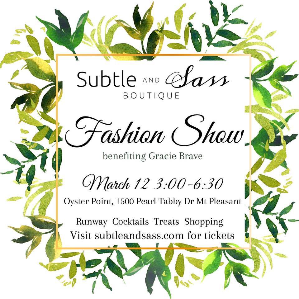 To learn more about Subtle and Sass, and the Fashion Show, visit www.subtleandsass.com or contact Renee Smith at shopsubtleandsass@gmail.com. To learn more about the Gracie and Brave Foundation, visit www.graciebrave.org.