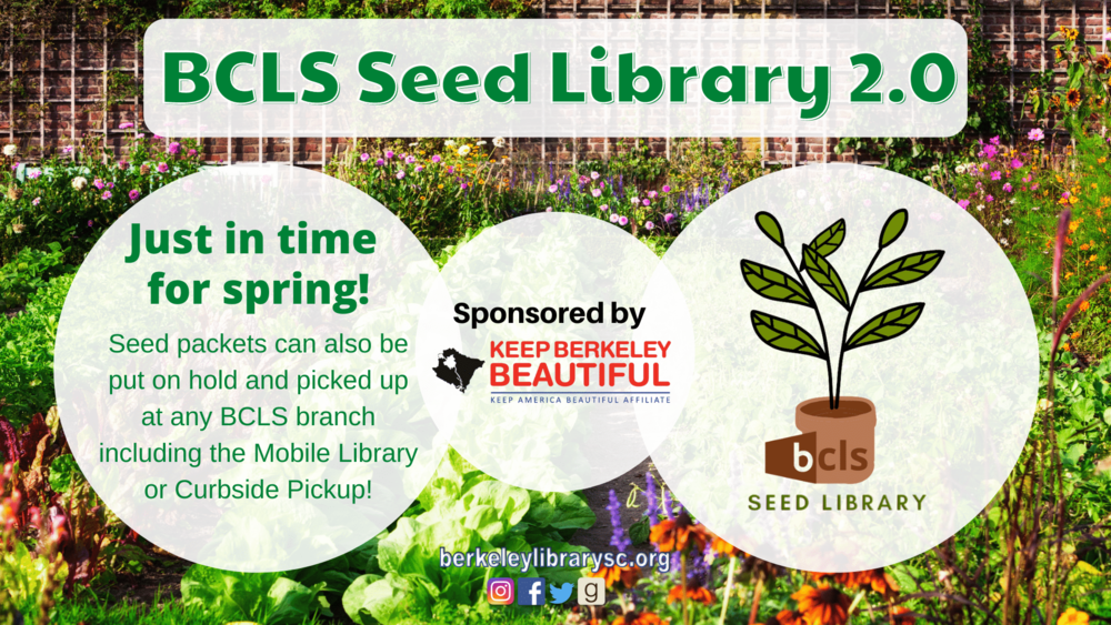 “Keep Berkeley Beautiful (KBB) is grateful for its Seed Library partnership with the Berkeley County Library System,” said Sarah McCarthy-Smith, Keep Berkeley Beautiful’s Executive Director. “With both the seed packets and gardening educational materials, Berkeley County residents can successfully grow and harvest their own herbs, and/or vegetables. The Seed Library can provide both community sustenance and splendor as well as an appreciation for nature while Keeping Berkeley Beautiful!”