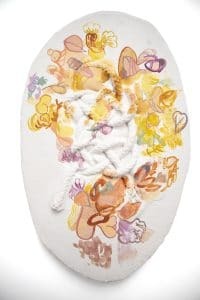 In render, Charleston based artist Camela Guevara contemplates the intersection of art and craft, activating ordinary art materials of canvas and plaster with fiber art and her distinctive painting style. The works evoke the tension between ephemerality and permanence, encasing knots within plaster like built up scar tissue. She contemplates our stubbornness and intractability in the face of change, and whether we can meet the needs of our society in terms of care and climate reality.