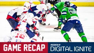 Cam Askew doubled the Mariners lead nine and a half minutes later, beating Shepard for his 17th tuck of the season. The former Stingray received a pass from Connor Doherty in the neutral zone and skated to the crease, eventually cutting to his right and sliding the puck into an open net for the 2-0 lead.