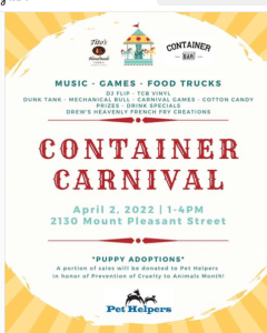 Container Bar to Host Container Carnival Benefiting Pet Helpers on April 2nd