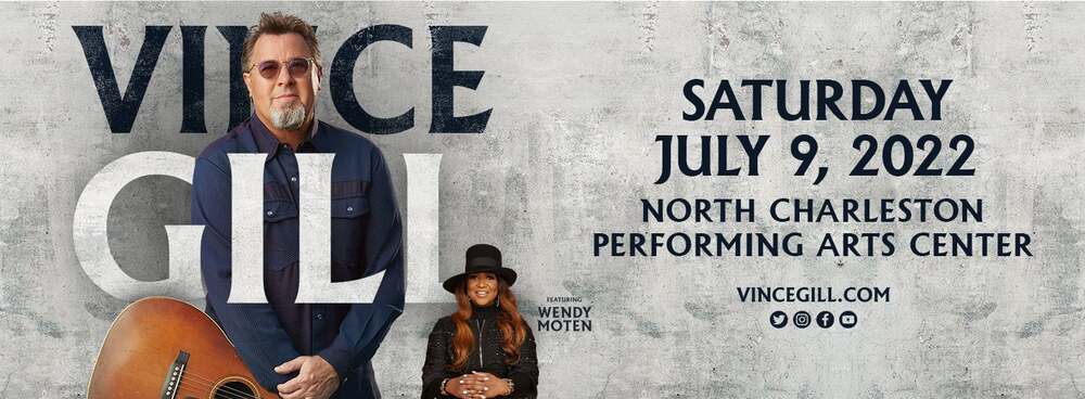 One of the most popular and most recorded singers of the past thirty years, Country superstar Vince Gill announced today that he will resume touring this summer and will stop at the North Charleston Performing Arts Center on Saturday, July 9th. It is the first time Gill has toured with his band since 2019. Vocalist Wendy Moten, who in 2021 became known for her performances on NBC’s The Voice, will be featured on the tour.